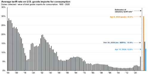 With many of the old rules and guidelines getting discarded, we as investors have to be ready for just about anything. Last year markets sold off in response to new and unprecedented tariff policies announced by the Trump administration. While many of these announcements were alarming, the net results so far have been much more muted than was originally feared. Chart 2 shows that net tariff collections have settled at about 10% of the value of our imports, and the recent Supreme Court ruling could eventually result in about half of those collections being refunded to the businesses who paid them. Once investors realized the difference between headlines and reality, the global stock markets recovered. Of course, this is not the end of the story. Even 10% tariffs are inflationary and will probably affect long-term returns in both stock and bond markets, but our point is that rational behavior tends to emerge after the dust clears.