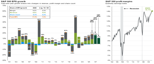 We know that the economy is growing, albeit at a slow pace. The Bureau of Economic Analysis estimates that GDP growth was 2.2% in 2025 and will likely slow a little in 2026. Job growth is rather anemic, but with little or no growth in the size of the workforce, the unemployment rate has stayed very low. Corporate earnings, on the other hand, tell a substantially different story. After expanding 13% last year, S&P 500 earnings per share are expected to grow 17% in 2026 according to Chart 3. Earnings are certainly not growing because of a booming economy. Many sectors of our economy, such as farming, retail, manufacturing, and construction are actually contracting or growing very slowly. However, corporations by and large have been able to squeeze more revenue out of each employee and grow their earnings through margin expansion. Some of this increased productivity is certainly due to adoption of artificial intelligence, but it’s likely that more of it is simply due to higher efficiency standards. Wage earners are working harder and business owners (and stockholders) are profiting. If earnings do continue growing at high double digit rates, that should bode well for the stock market, since over the long term, earnings growth and stock market growth are highly correlated.